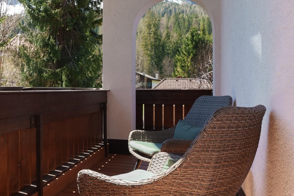 Außerdem bietet der Raum einen wunderschönen Balkon mit Sitzgelegenheit und traumhaftem Blick auf die Mieminger Kette und den Wetterstein.